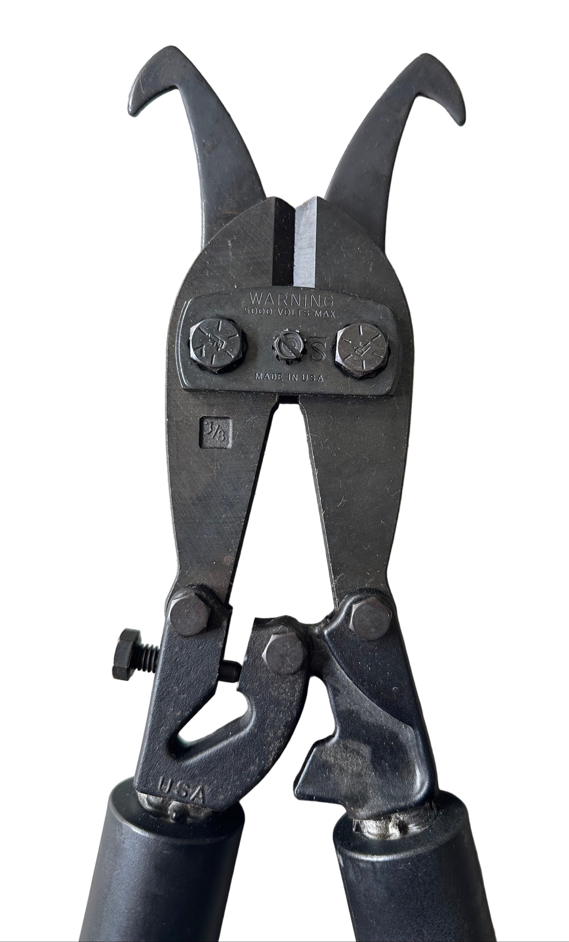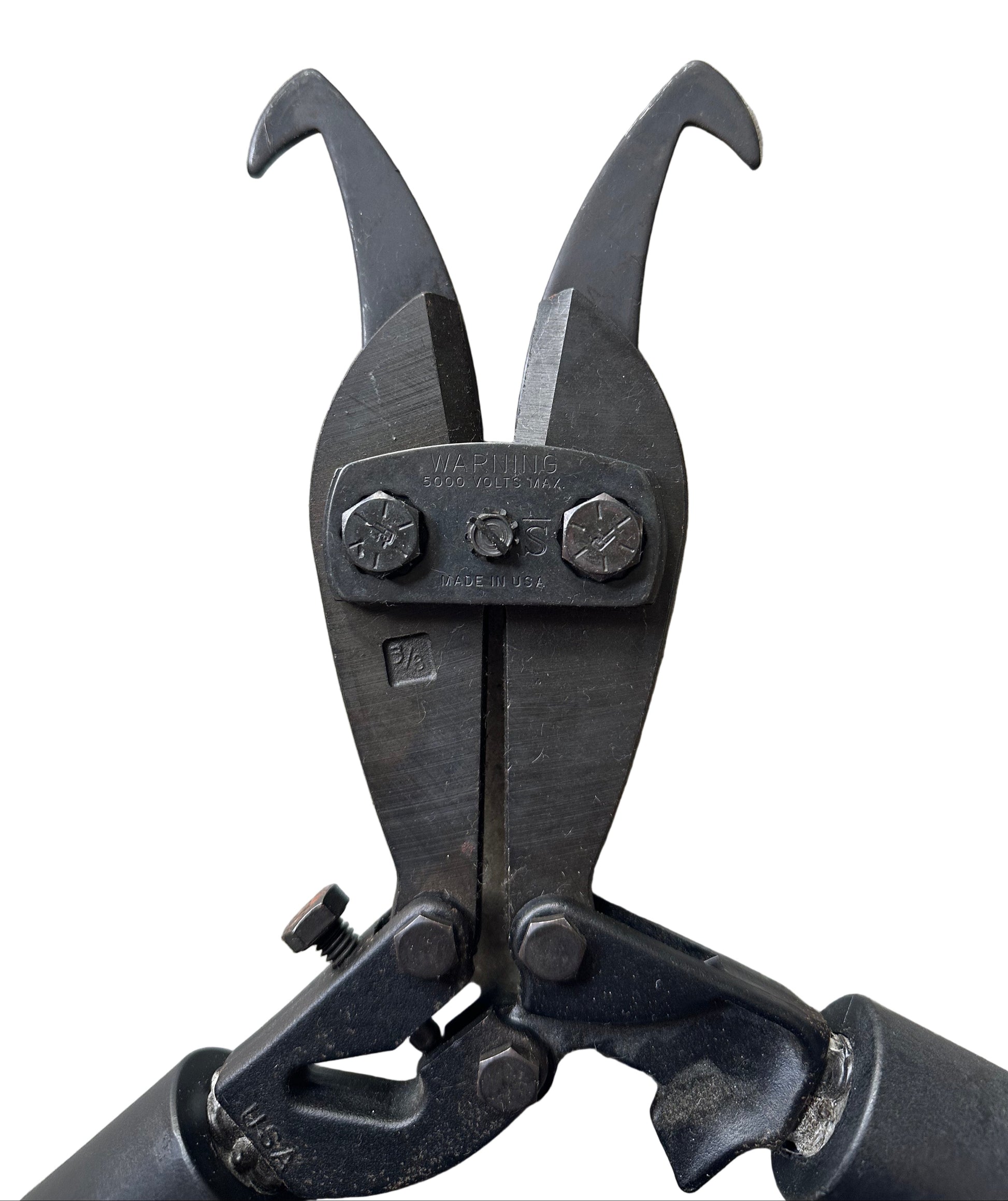 Heavy Duty, Compact, Insulated, and has prongs on the end to expand the opening and funnel wire into jaws for easy mechanical breaching of wired obstacles at night.